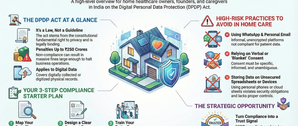 Ultimately, proactive DPDP compliance is not about avoiding fines. It is about building a resilient, trustworthy, and market-leading home care brand for the future—one that is prepared for the next wave of digital transformation and poised to earn the lasting confidence of patients and partners alike.